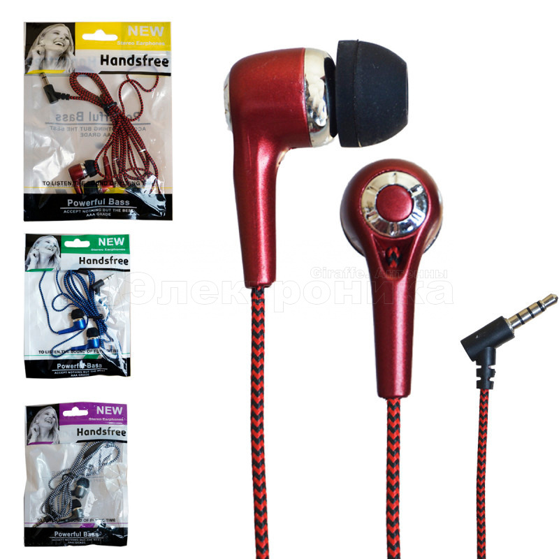 Наушники и гарнитуры, Наушники проводные (в пакетиках), Наушники проводные i060 в пакетике угловой аукс (тканевый)
